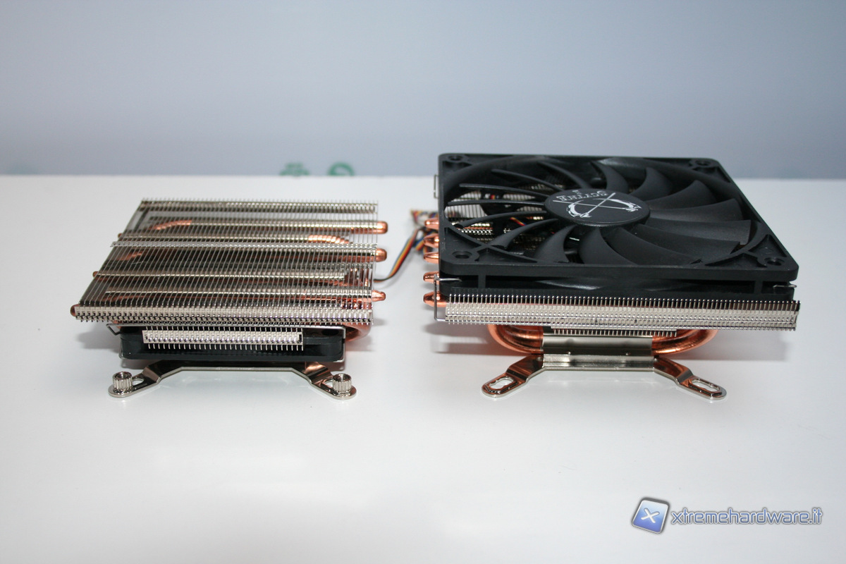 Ora invece vi mostreremo i due dissipatori a confronto. Come potete vedere sono moltissime le somiglianze strutturali ed il piccolo kozuti sembra che sia stato semplicemente una versione depotenziata del Big Shuriken 2. Nelle seguenti foto il Kozuti è stato modificato eliminando la ventola inferiore da 80mm ed equipaggiandolo con una ventola da 140mm e 25mm di spessore.