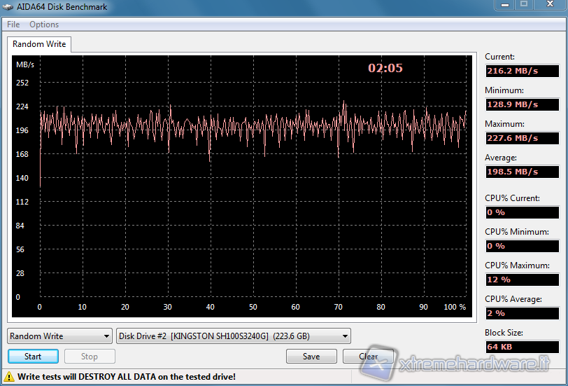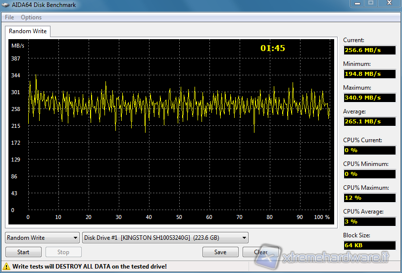 HD Tune è un utility per Hard disks e SSD con molte funzioni, può essere utilizzato per misurare in modo accurato le performance del nostro drive alla ricerca di errori in quanto permette anche di monitorare lo stato vitale del drive, inoltre permette di cancellare dati in modo sicuro e molto altro ancora. La versione da noi utilizzata è l'ultima disponibile al momento e si tratta della 4.60. Il programma è disponibile in due versioni, una freeware (HD Tune) e una a pagamento (HD Tune PRO), nel nostro caso è stato necessario utilizzare la versione PRO in quanto è l'unica a misurare le prestazioni del drive in scrittura. Nonostante il drive in nostro possesso fosse completamente vuoto il software, prima di effettuare test in scrittura, avvisa dell'imminente perdita dei dati e chiede una conferma all'utente per proseguire.